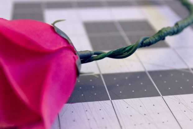 Cuando usted tiene su diseño listo puede empezar a adjuntarlos. Había torcido las flores en uno a la vez y me aseguró con cinta floral.