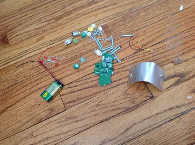 En primer lugar, usted necesita botas. Tengo a Old Navy unos por 8.99 y hasta ahora están trabajando bien. Usted también necesita pintura de aerosol (uno o dos colores), he usado plata y negro, sharpies o algunos otro tipo de marcador de la permanente (usado plata para contrastar con la bota), pintura conductora (bareconductive.com), algunos LEDs y resistencias (usted puede encontrar en radioshack), una batería de 9v y batería snap y algunos viejos aparatos a desarmar (utilicé un GPS antiguo y 2 linternas de Dinamo).