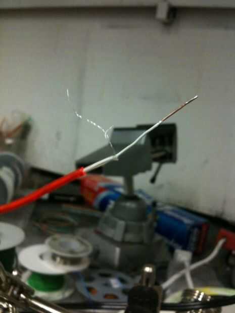 A continuación, utilice una cuchilla para raspar el blanco de la capa de la base de EL alambre, exponiendo el núcleo interno de cobre.