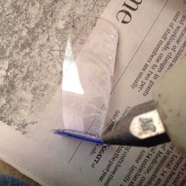 Con la pistola de pegamento caliente, pegar las dos piezas perpendicular.