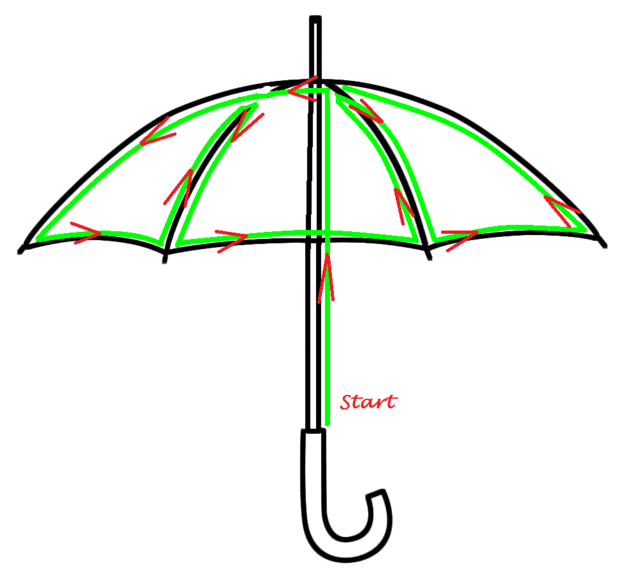 Iniciar el cable cerca de la manija del paraguas, donde el inversor se ir y subir el eje hasta el cuello. En el cuello, cinta del alambre que envolviendo la cinta alrededor del eje y del alambre.