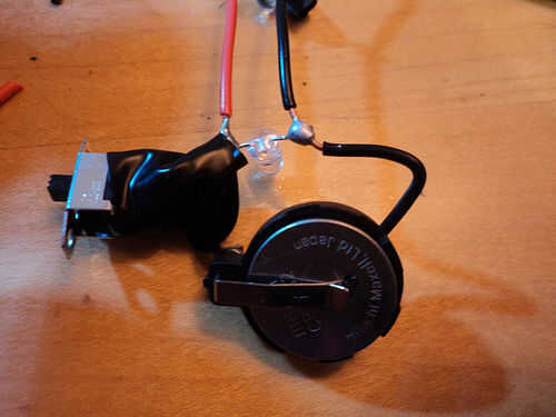 El circuito es bastante simple, con pocos LEDs, posiblemente algunas resistencias (no necesita cualesquiera), una batería y un interruptor. Hay un montón de instructables sobre electrónica para no ir muy a fondo en él.