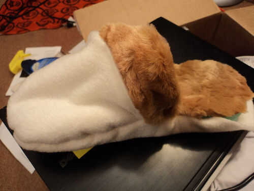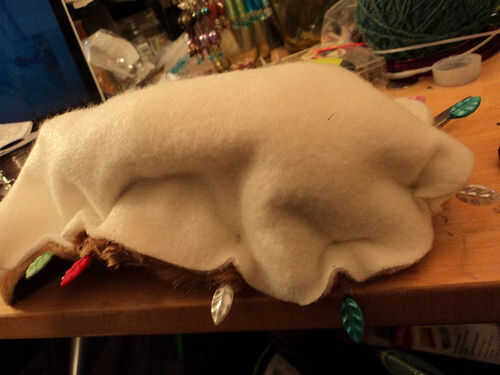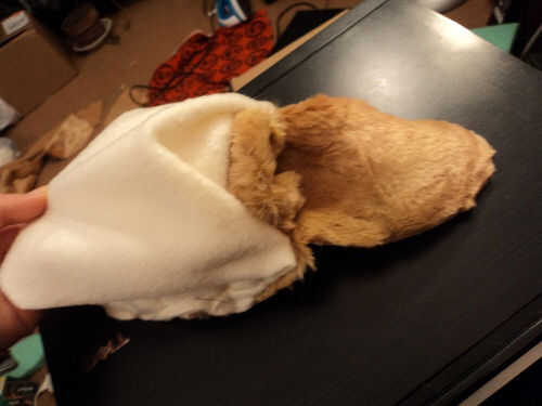 Coloque entre derechos de las plantas junto con la parte superior y coser desde el centro de un lado alrededor de la punta a la mitad del otro lado para que la parte delantera se cose junto con el talón abierto. Puede activar el deslizador de la derecha hacia fuera. Debe ahora parecer una zapatilla, especie de!