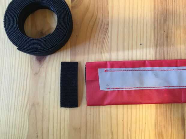 Cortar un trozo de velcro que ajuste el extremo opuesto de la tira y coser en su lugar.