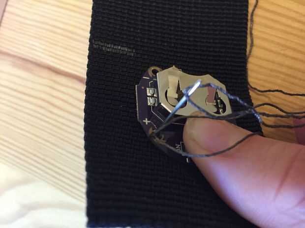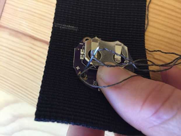 Asegúrese de que coser alrededor del agujero varias veces para asegurar una fuerte conexión eléctrica.