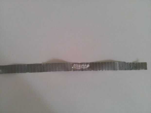 Pegar el trozo de hoja sobre un pedazo largo de cinta del conducto. Coloque las dos pilas en el papel de aluminio. Uno debe tocar la hoja con su terminal negativo, el otro con su terminal positivo. Ahora coloque el LED a través de los otros dos terminales y envuélvalo con la cinta restante los cables de LED y baterías. Asegúrese de dejar cierta holgura para que los conductores del LED no están completamente en contacto con los terminales de la batería.