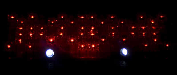 de salida de luz equivalente de una bombilla de halógeno de 70 Watts pero solamente uses12 vatios de potencia.Haz tiros muestran un edificio en la noche 100-ft distancia iluminada por esta luz LED bicicleta.Detalladas especificaciones y lista de piez