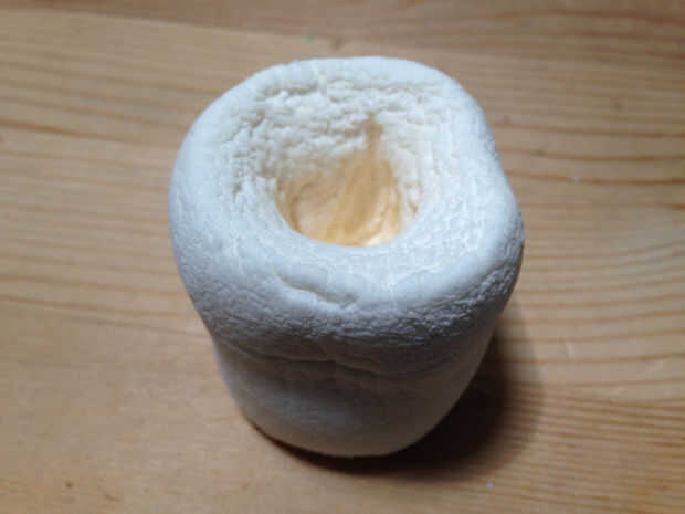 El staler el malvavisco (a un punto), más fácil es hacer esto sin levantarse la estructura pegajosa en su aguja de tejer. Si tienes problemas con que se pega el malvavisco, empuje la aguja de tejer en un palo de mantequilla y luego suavemente torcedores topes lo mientras empujas en el malvavisco. No pegan en absoluto.