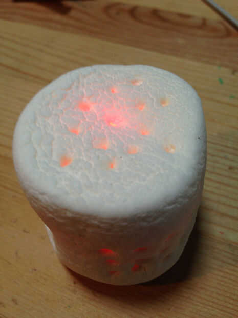 Voltee su luz de malvavisco y colocarlo en algún lugar que te oscuro. Tal vez usted podría sentarse en una pequeña piedra lisa, fuera del alcance de los niños y mascotas.