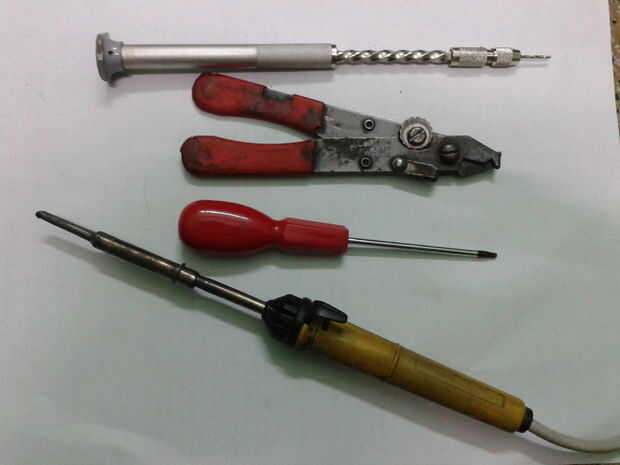 Segundo- hacer 4 pares de agujeros, total 8 agujeros para las patas de 4 Leds. les y de soldadura según el diagrama.