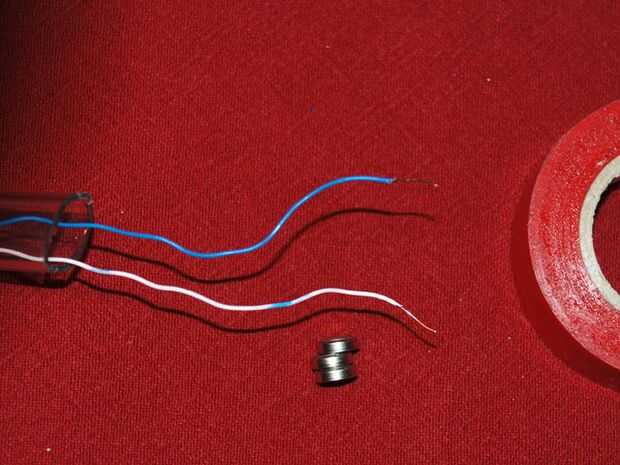 Utilizar la cinta aislante para unir las pilas en serie (terminal positivo al negativo) y los extremos del cable en su lugar en cada extremo de la pila de la batería.