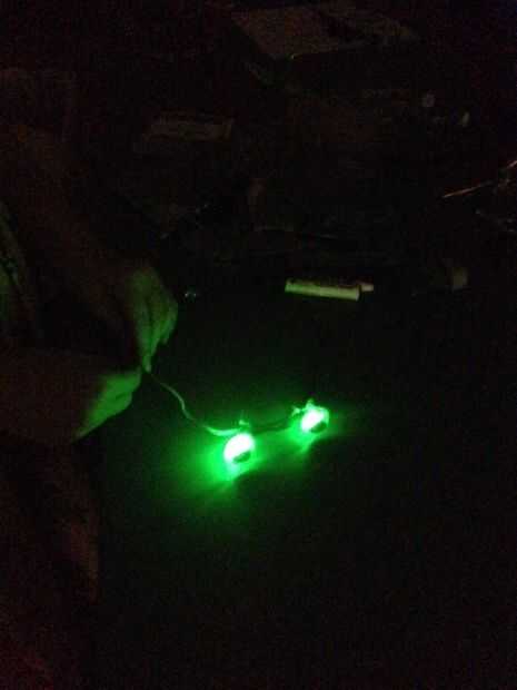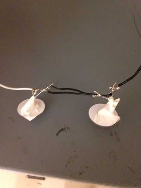 3. soldadura de los cables a los extremos positivos de ambos LEDs