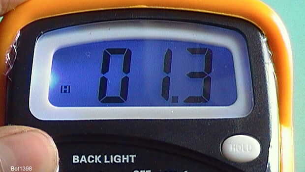 Las imágenes muestran las lecturas que obtuve de un brillante estupendo LED verde en diferentes condiciones.