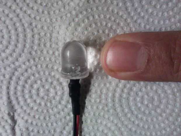 Este caso luz LED simple está hecha de un palo flexible y articulado (uso de las mujeres tratar su pelo) y un tubo de ensayo plástico, un tubo del encogimiento del calor. Todos los artículos se pueden comprar de Ebay u otra tienda muy barato. Ver fot