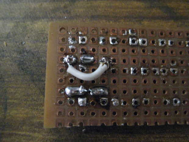 paso uno:Diagrama de la célula Solar y la soldadura de las piezas requeridas en la célula solar. (Foto 2)Soldar dos cables a la célula solar en las conexiones para el motor. Uno para positivo, uno para el negativo. Estas se utilizarán para la luz LED