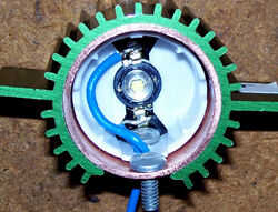 Tomar un descanso después de adherir las estrellas Luxeon para las tapas de cobre. Esto permitirá tiempo para el epoxy se endurezca lo suficiente y para que te relajes después de que el estrés de trabajar con la cola más cara que alguna vez a manejar. A continuación, deslice los cables a través del soporte de la óptica, inserte los tornillos del #4 y ver cómo todo encaja.