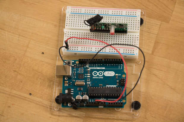 Ejecutar un cable puente del pin "5 v" en su Arduino a la pista "+" en su protoboard. Ejecute otro cable de puente desde un pin "GND" (tierra) tu Arduino al "-" de la pista en su protoboard.