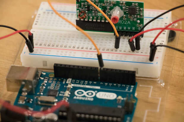 Ejecutar un cable puente del Pin "7" en tu Arduino a pin "D3" en su receptor de RF.