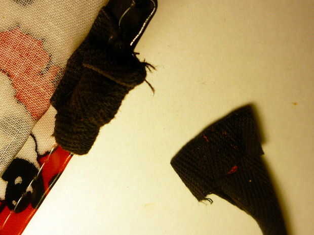 Cortar el lazo del delantal al costado. Abra un paquete de sugru y cubrir un imán con una fina capa. Pulse en el vínculo, luego doblar sobre el final. Repita el procedimiento en el lado corto. Cuanto más desea el cierre magnético que, el diluyente debe hacer sugru (y viceversa, por supuesto).