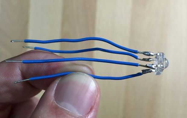 Piraña LED están hechas para sentarse más cerca en el protoboard y necesitamos extender las piernas. Logramos esto por 4-6 pulgadas de soldadura simplemente piezas de calibre pequeño núcleo sólido gancho encima del alambre para extender las piernas.
