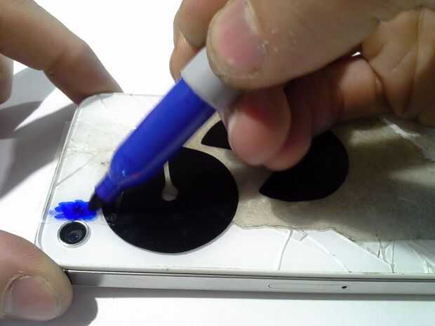 Apague el teléfono en un Hack de luz negra. Su super fácil de hacer!Todo lo que necesita es un smartphone con una luz, tres pedazos de cinta pequeña y dos sharpies. Una azul, una morada.Tomar la primera pieza de la cinta, poner encima la cámara flash