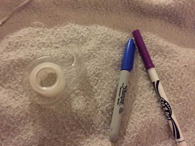 3) negros y morados sharpies o marcadores. Estoy usando un rotulador azul y un marcador púrpura.