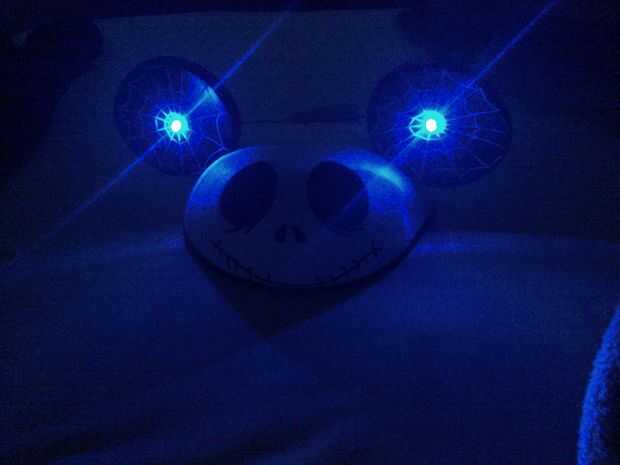 jack skellington (micky mouse) oídos que iluminan la noche.