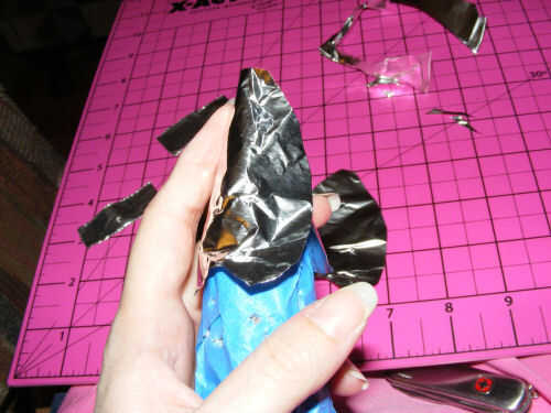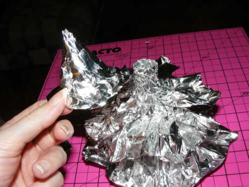 Utilice el soporte de papel y cinta adhesiva en la parte inferior. Voltee los lados, si tienes algo que se asemeja a un sombrero de Brujas disco, lo hiciste bien! Ahora poke agujeros