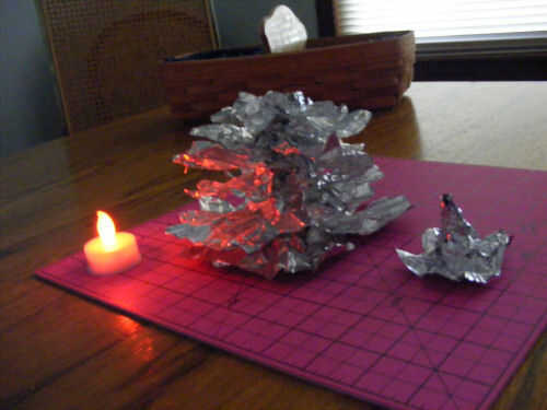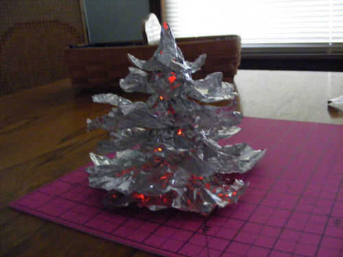 Ahora, enderezar y ajustar su árbol. Encienda su luz de té y establecer la base de su árbol sobre él. Puede comprobar la salida de luz y agrandar los orificios o añadir un poco así que mejor el brillo.