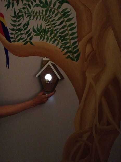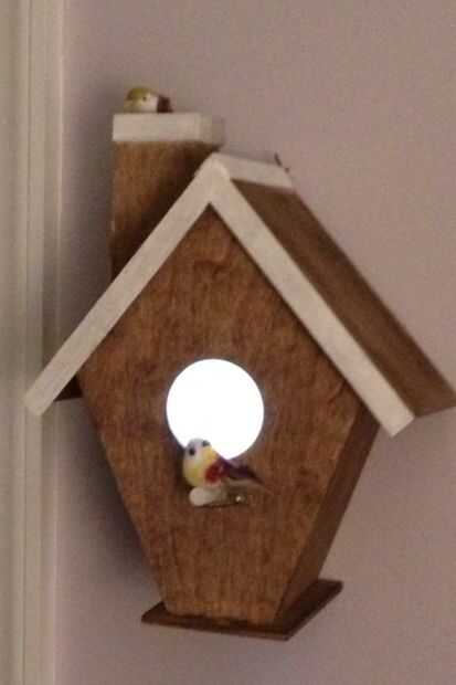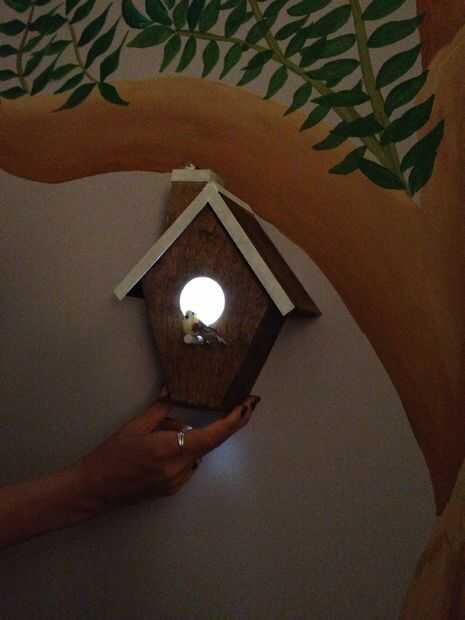 Mi amigo hace poco tuvo su primer bebé. En preparación para la guardería, ella pintó un precioso árbol tropical y pájaro en la pared del cuarto de niños. Como parte de mis regalos de bebé, quería hacer una lamparita de pajarera para el vivero colgar del árbol.