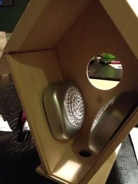 Decidí usar pop luz para la iluminación como ella no quiere que una toma en la pared. Yo les coloca de modo que ella podría alcanzar un dedo y coloque su pulgar en el exterior para presionar a los y. Pegué dos luces LED en su lugar.