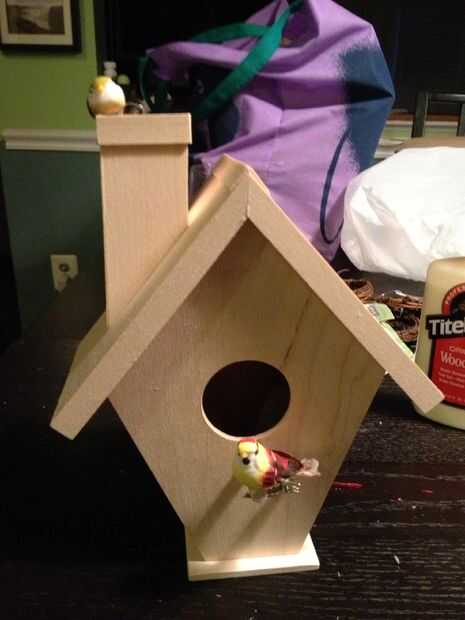 Como se puede ver, también la izquierda sobre fino laminado y hecho una simple chimenea (otra vez, cortar con tijeras). Mi amigo y yo fuimos a la tienda de artesanía y seleccionar fuentes para diseños. Nos gustó la idea de poner las aves en él.