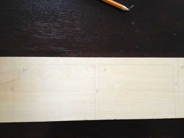 Utilizando un lápiz, ligeramente remontado el corte de papel salidas a la madera. Asegúrese de hacer dobles de cada corte excepto la pieza del fondo y asegúrese de dejar espacio entre las líneas de corte (para tener en cuenta el espesor de la hoja de sierra). Siempre hago una "X" en el lado de la línea de corte, sólo para asegurarse de que cortar derecho.