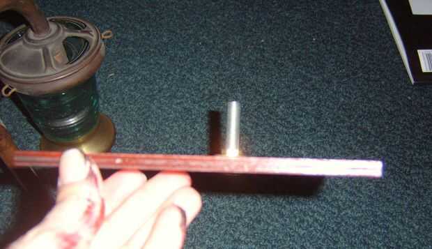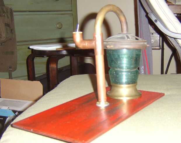 2. colocar la lámpara (todavía seco encajada entre sí) en la base y marque donde pasará el tubo de cobre por la base y donde se sentará el anillo de latón