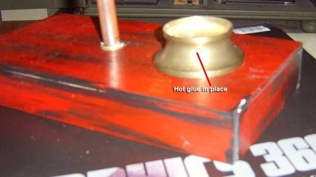 5. Pegue la pieza de la lámpara de latón (anillo) hasta la base con pegamento caliente