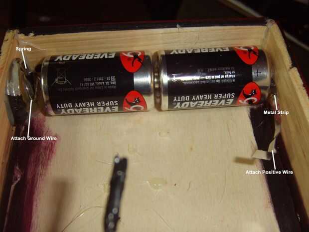 6. Coloque las baterías entre el resorte y la tira del metal (lado negativo será en la primavera y el terminal positivo en la tira del metal
