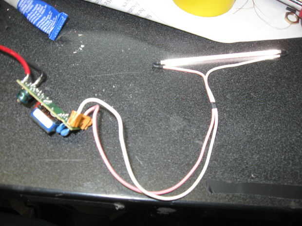 Los conductores de tubo de cátodo frío están conectados a las salidas del circuito.