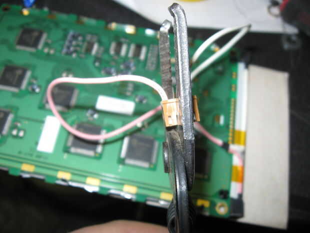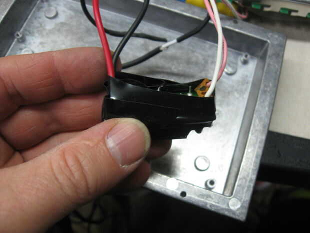 Me envuelve el circuito con cinta eléctrica y alimenta el cable por un agujero en la parte posterior de la caja del LCD.