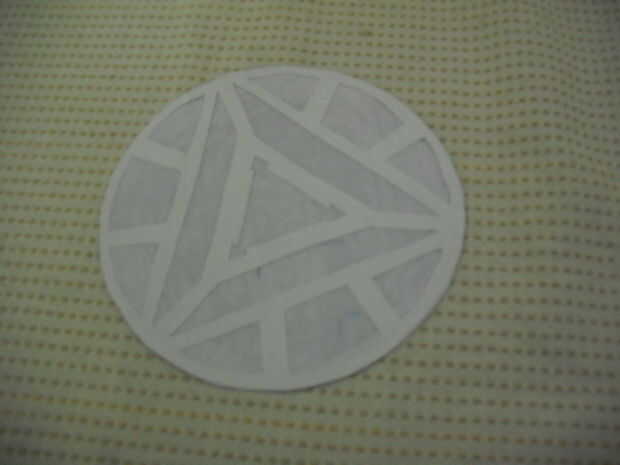Cuando el pegamento se seque corta la imagen del reactor de arco de la segunda ponencia. Usted debe dejar con una figura circular que tiene papel en la parte superior e inferior y plástico en el medio