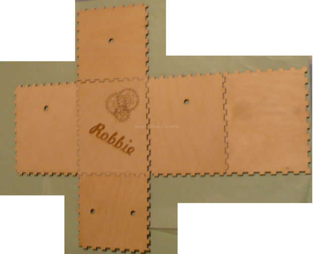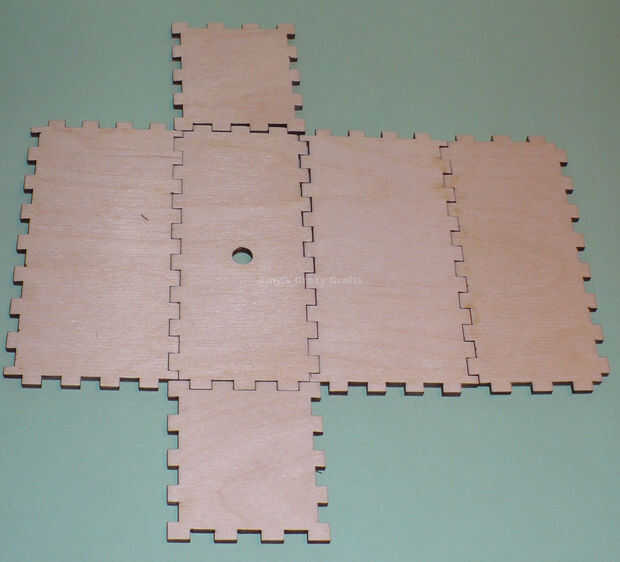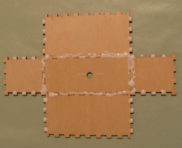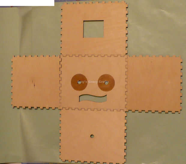 Luego pegue sólo 5 de los seis lados. (No pegar el lado opuesto de los agujeros para los brazos y piernas, la parte posterior del cuerpo principal y la parte superior de la cabeza). Esto permitirá acceso para instalar las tuercas y los pernos y la luz solar.