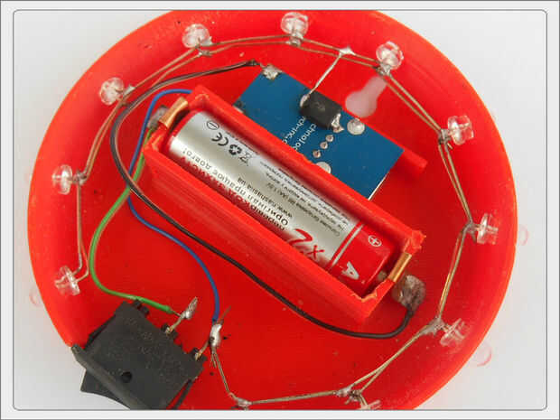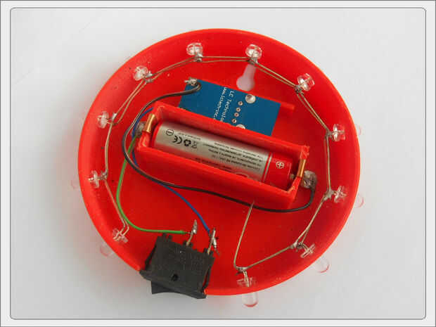 El conductor del LED en el tablero del convertidor, como en la foto de la soldadura. Tenga en cuenta la polaridad del conductor del LED.