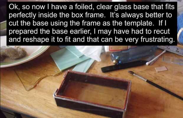 Una vez que la base es cortar, revestido con cobre y soldada, colocar los lados en la base y debe encajar muy bien y cómodamente dentro de la caja como se puede ver en la imagen.