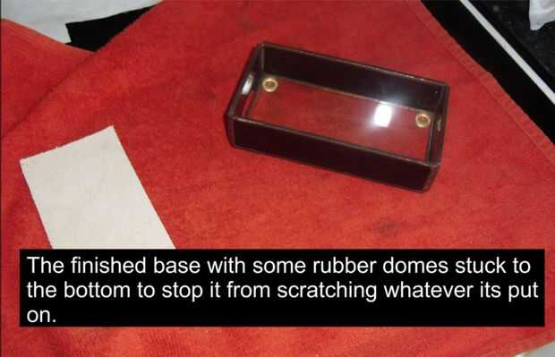 Las cúpulas de goma son fantásticas para este tipo de proyectos ya que añadir un poco de fricción y protegen cualquier cosa la luz nocturna se coloca en pero si tienes problemas para encontrarlas, solo pegamento lápiz final gomas en las esquinas de la base o dejarlos fuera en conjunto.