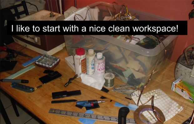 He estado haciendo piezas de tiffany hace algunos años y para ser honesto, cualquier espacio que puede llevar sus herramientas y materiales va a hacer en una pizca.