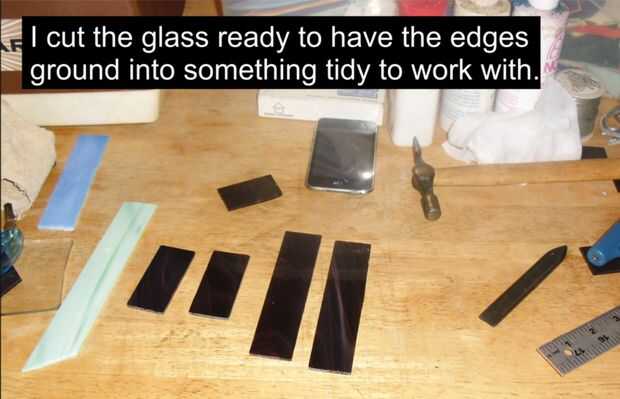 Para obtener piezas paralelo aseado, corté el vidrio usando el ancho de una regla de acero para asegurar consistencia pero su hasta usted cómo usted medir el cristal.