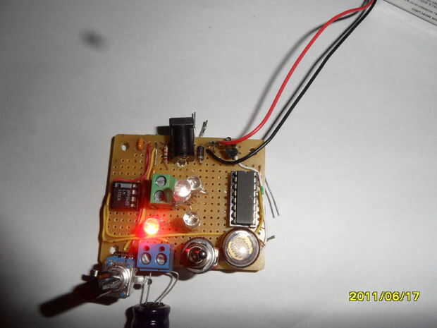 Al principio no sigo el orden de 3, 2, 4, 7, 10, 1, 5, 6, 9 y 11 que causan los LEDs para el flash fuera de secuencia. Después de la reorganización, destellaban secuencialmente. He probado todos los otros circuitos. Necesitaba una luz de noche. VI uno en una tienda local de dólar que parecía fresca pero sentí que debo construir mi propio. Quería colores aleatorios que no eran realmente al azar, y el circuito que usé fue el cazador de luz LED.
