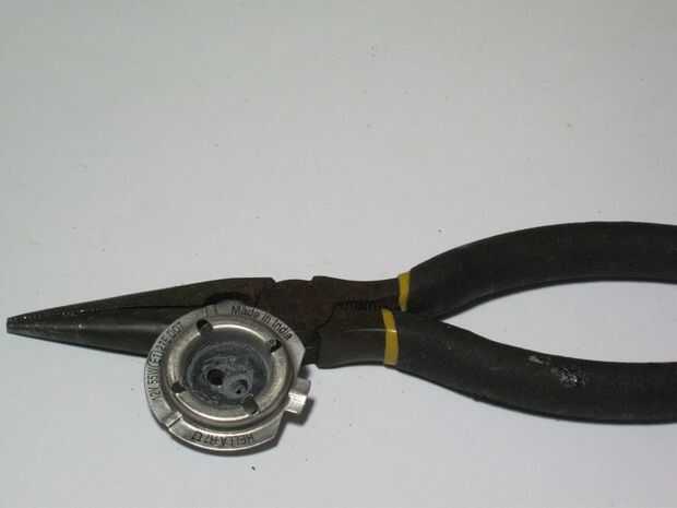 Usando las pinzas cuidadosamente Desconecte el bulbo de su base, es muy importante no romper la bombilla causan está lleno de gas tóxico. Luego retirar las patas.