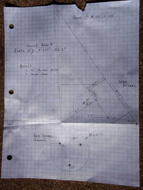 Una vez tuve los ángulos dibujó todo en un trozo de papel milimetrado con un transportador (vieja escuela, su Navidad romper así que no hay computadora de escuela con CAD y tengo Mac) ver imagen adjunta de dicha hoja. Perdón por la calidad, usted consigue la idea, además de que tendrá que hacer sus propios cálculos dependiendo de donde usted vive.