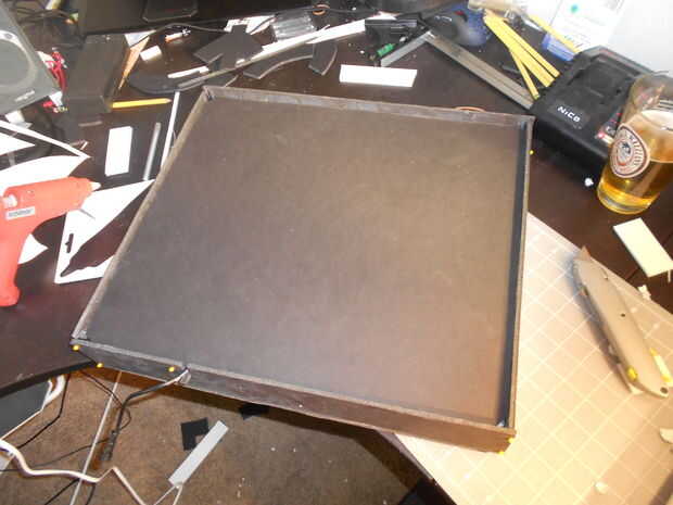 A continuación pongo las luces en el cuadro. Antes de cerrar he probado el LED con el regulador.