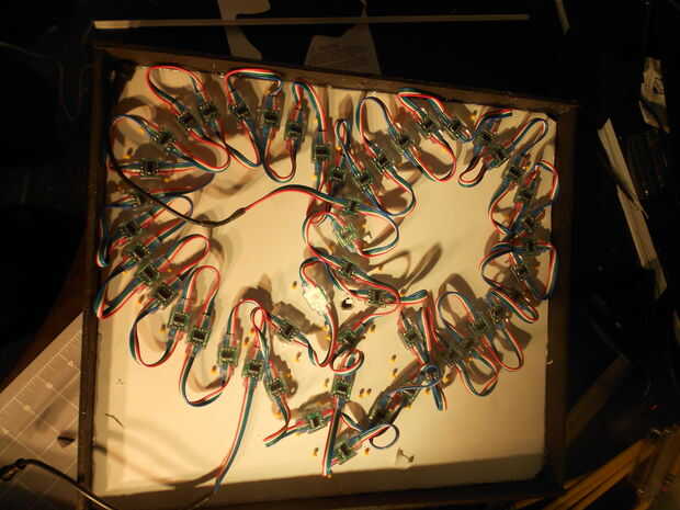 Lo que mide la línea de tiempo se dividió por los píxeles y entonces había medido hacia fuera con un lápiz en la base de la espuma. Asegúrese de que usted escriba su ruta y cantidad de LED en cada área. Necesitarás esto para el siguiente paso.